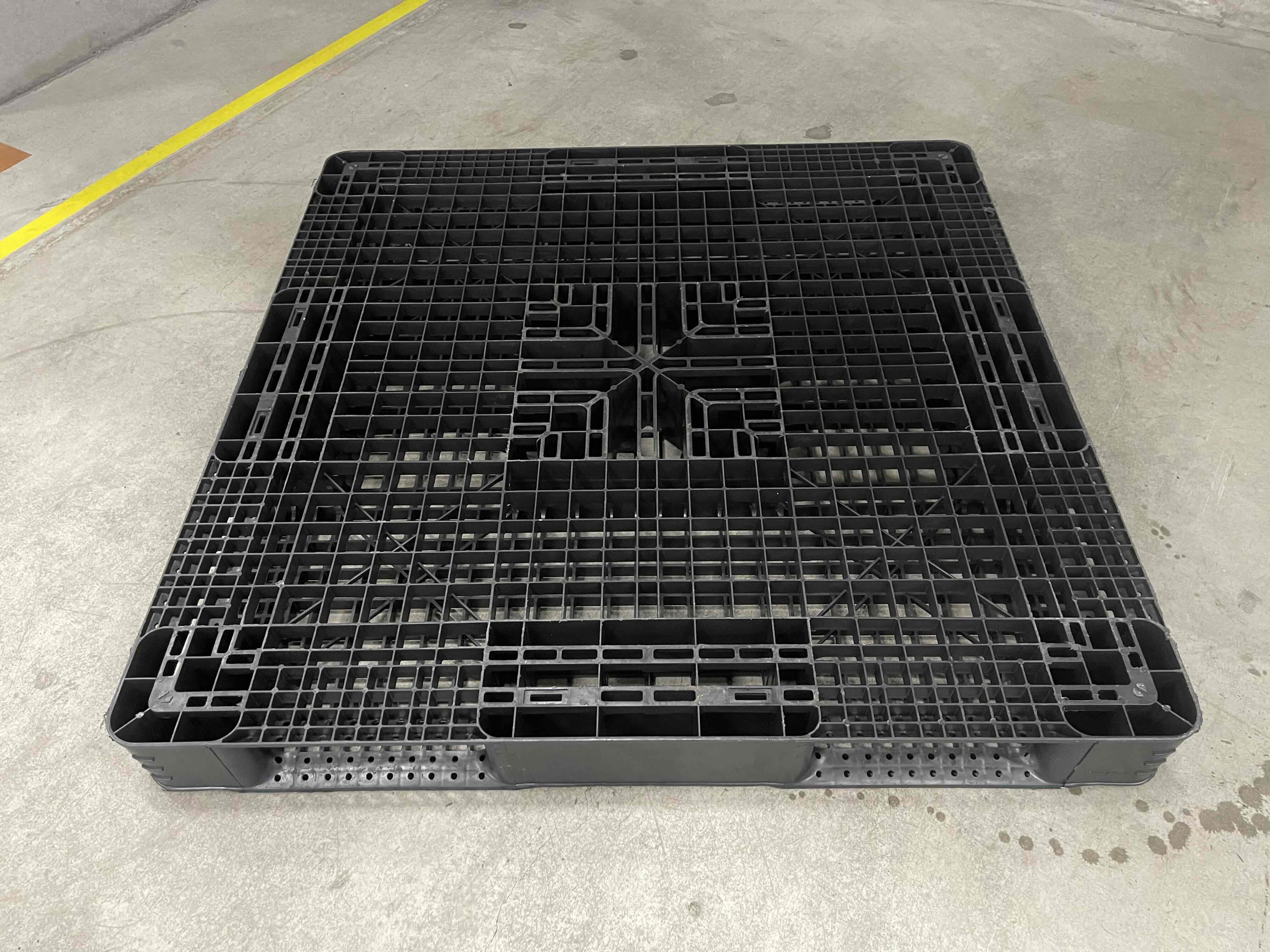【中古】プラスチック中古パレット 1100×1100×140 両面使用(ハンドリフト使用不可)【大阪府摂津市】 p-00431-1 ※10枚からのご注文