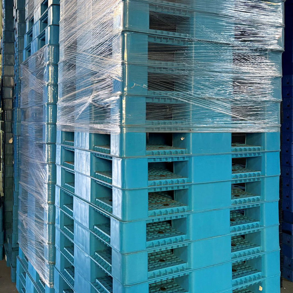 【中古・特価セール】プラスチック中古パレット 1100×1100 両面使用 【北海道石狩市】p-00364 ※10枚からのご注文