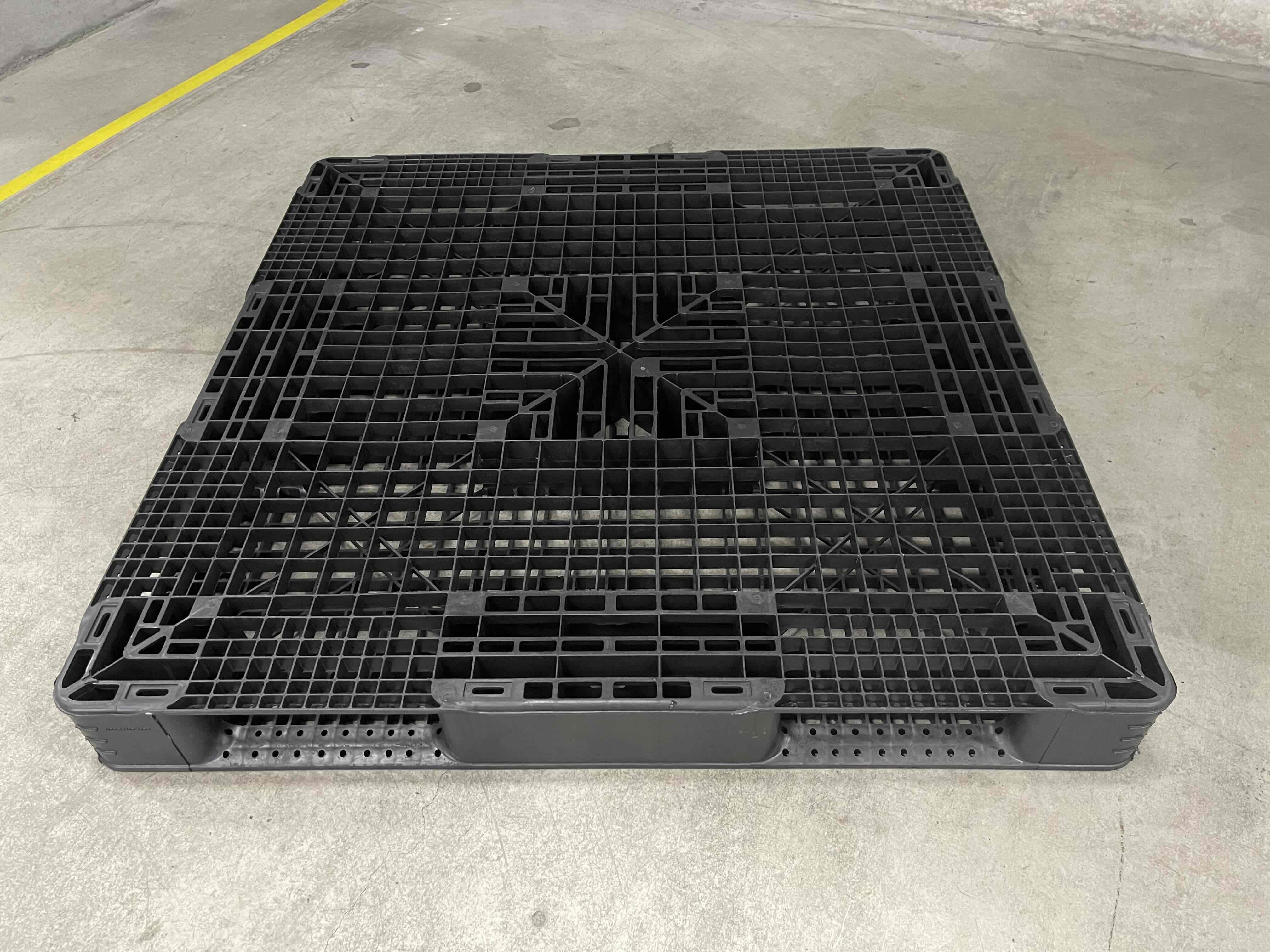 【中古】プラスチック中古パレット 1100×1100×140 両面使用(ハンドリフト使用不可)【大阪府摂津市】 p-00431-1 ※10枚からのご注文